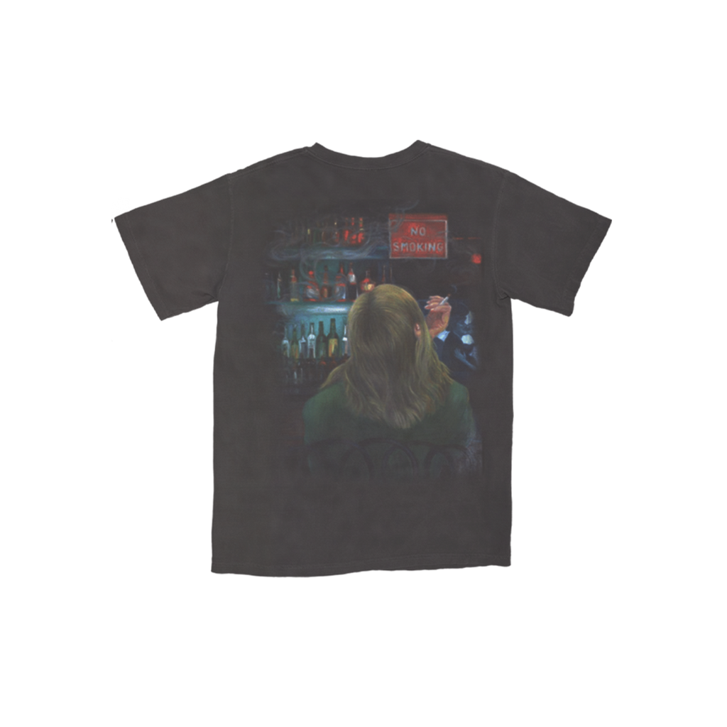 Charcoal Grey Tee Shirt with Joni Mitchell's paintings representing the Both Sides Now artwork on front and back